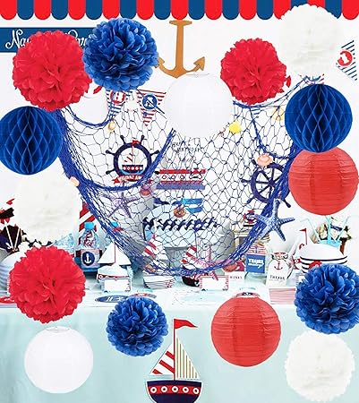 Start with fresh flowers in your party colors (red, white, yellow), in a glass vase. 5 fun nautical theme baby shower decorations. Add to favorites nautical baby shower games, ahoy it's a boy baby shower games theprintpatch. Nautical baby shower party decorations. 4.7 out of 5 stars115 $16.99$16.99 free shipping on orders over $25 shipped by amazon Nautical baby shower decorations for boy, ahoy its a boy baby shower decorations party supplies kit by homond, unique nautical themed paper fans cake topper. See more ideas about nautical baby shower, baby shower, nautical baby. We love this easy nautical baby shower decorating idea. Nautical baby shower decoration the nautical theme brings in the blue color of the sea to welcome the baby, and this theme is trending these days. Its a boy nautical baby shower cake toppers / its a boy nautical baby shower decorations / nautical diaper cake decorations sunshowerstuff. 5 out of 5 stars (1,214) $ 8.75. Current price $14.99 $ 14. 4.5 out of 5 stars (1,649) sale price $7.04 $ 7.04 $ 8.28 original price $8.28 (15% off) add to favorites.
